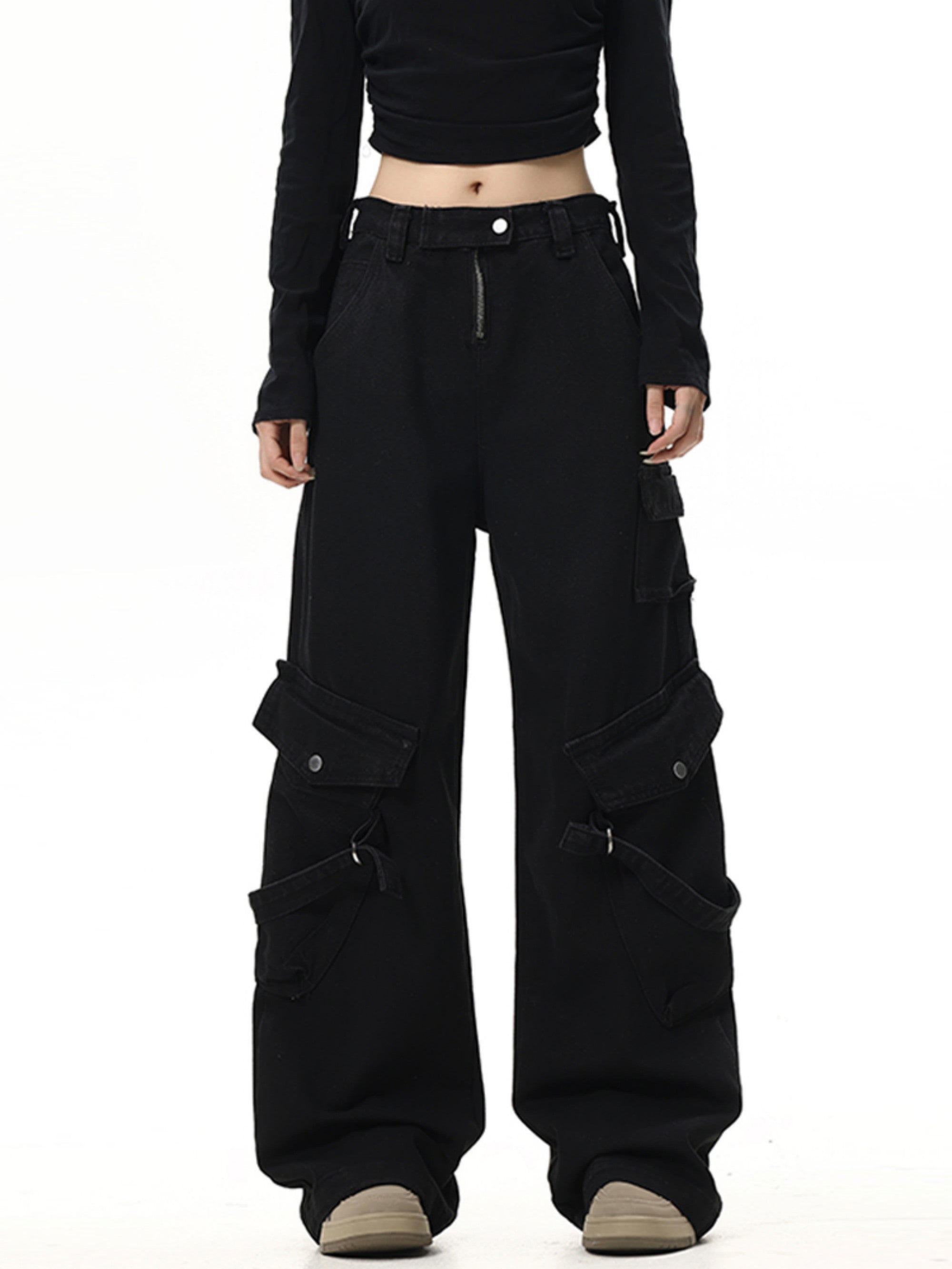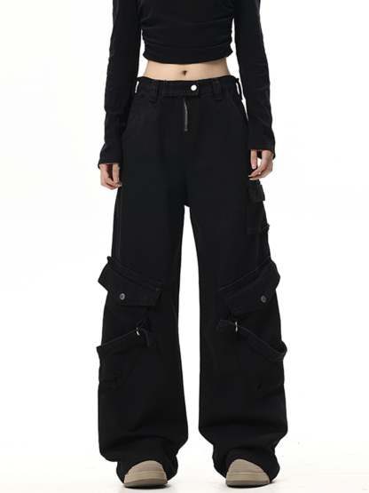 Straight Washed Drawstring Pants With Drawstring