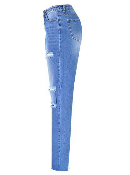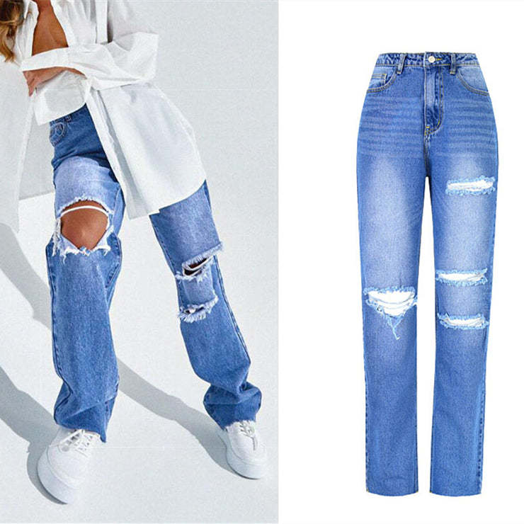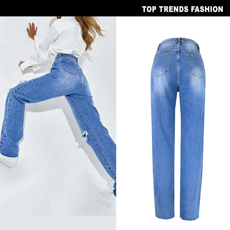 Women's High Waist Straight Ripped Jeans